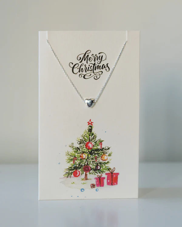 925 Sterling Silver 'Heart' necklace with Christmas Tree artwork & Merry Christmas written on the card.