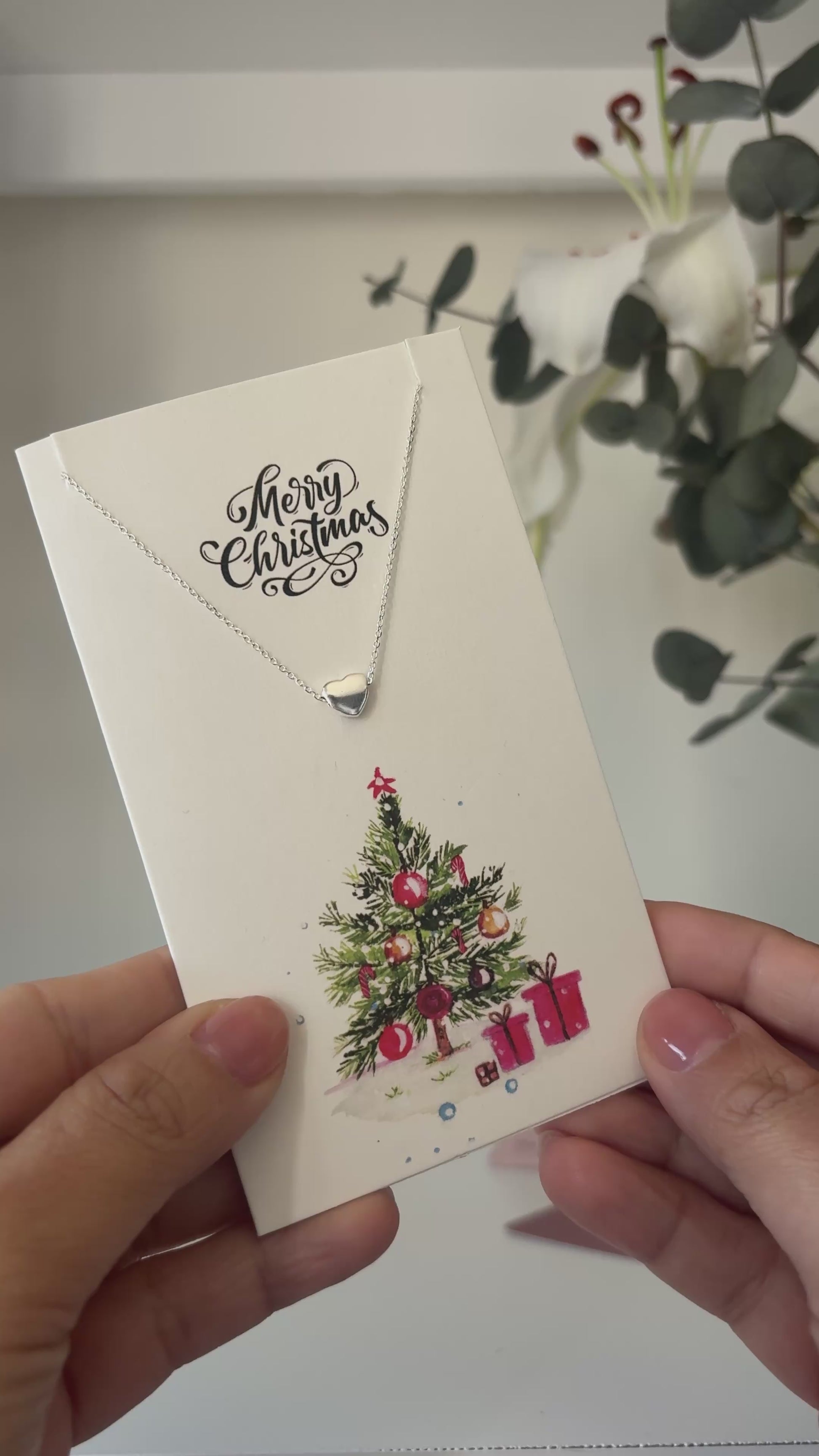 A timeless gift to treasure this holiday season. This solid 925 sterling silver necklace comes presented on an exclusive Christmas artwork card that reads “Merry Christmas” — a forever keepsake to treasure.