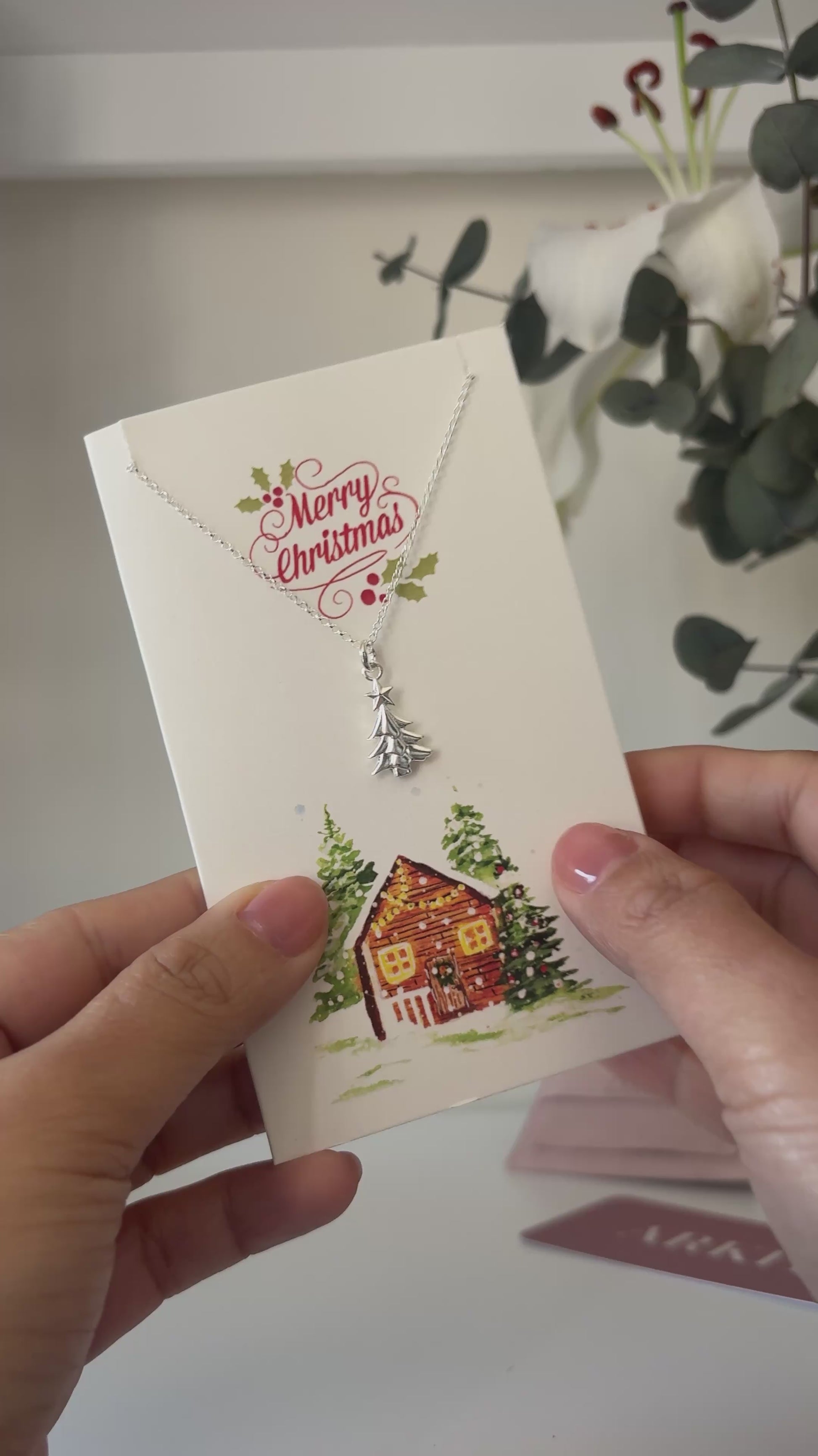 A timeless gift to treasure this holiday season. This solid 925 sterling silver necklace comes presented on an exclusive Christmas artwork card that reads “Merry Christmas” — a forever keepsake to treasure.