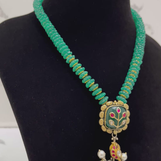 Cow & Parrot Motif Indian Necklace | 925 Sterling Silver