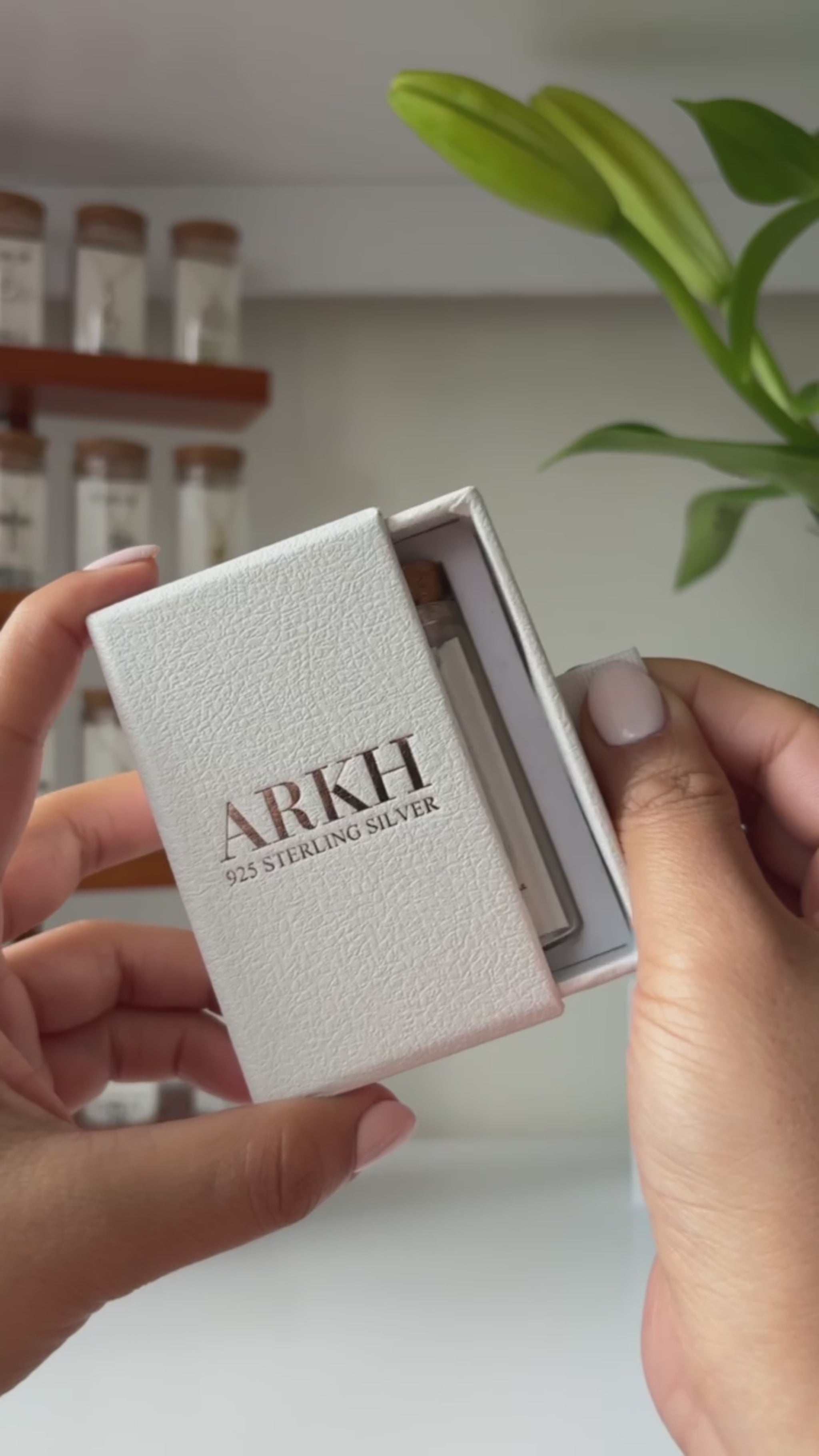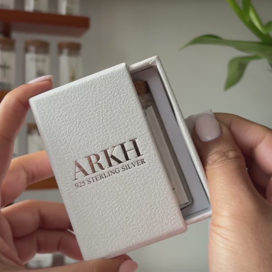 925 sterling silver necklace presented as a message-in-a-bottle. The card reads "What you think - you become, What you feel - you attract, What you imagine - you create!" and features an original illustrated design. Delivered as a complete keepsake set of bottle, card, and jewellery.