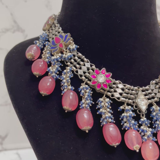 Pink Beads Indian Necklace | 925 Sterling Silver