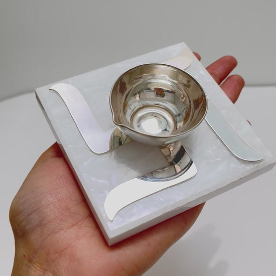 Swastik Marble Diya | 925 Sterling Silver